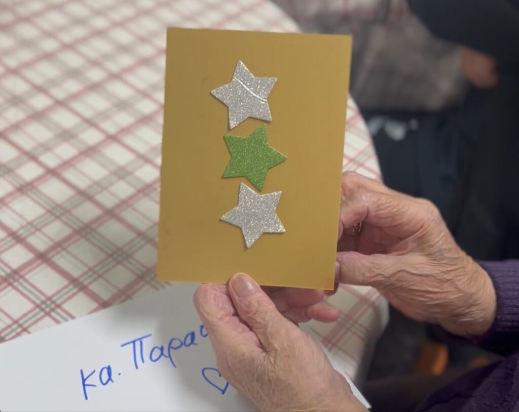 Με αφορμή τις εορταστικές ημέρες, η ομάδα της Co2gether την Παρασκευή 15 Νοεμβρίου πραγματοποίησε μία ιδιαίτερη χριστουγεννιάτικη δράση για πάνω από 20 άτομα μεγαλύτερης ηλικίας που διαμένουν στο Καλλιμανοπούλειο Εκκλησιαστικό Διακονικό Κέντρο. Όλοι μαζί δημιούργησαν χριστουγεννιάτικες κάρτες για τους αγαπημένους τους ανθρώπους, σε ένα εργαστήριο που προάγει τη δημιουργικότητα, την υγιή και ενεργό γήρανση.