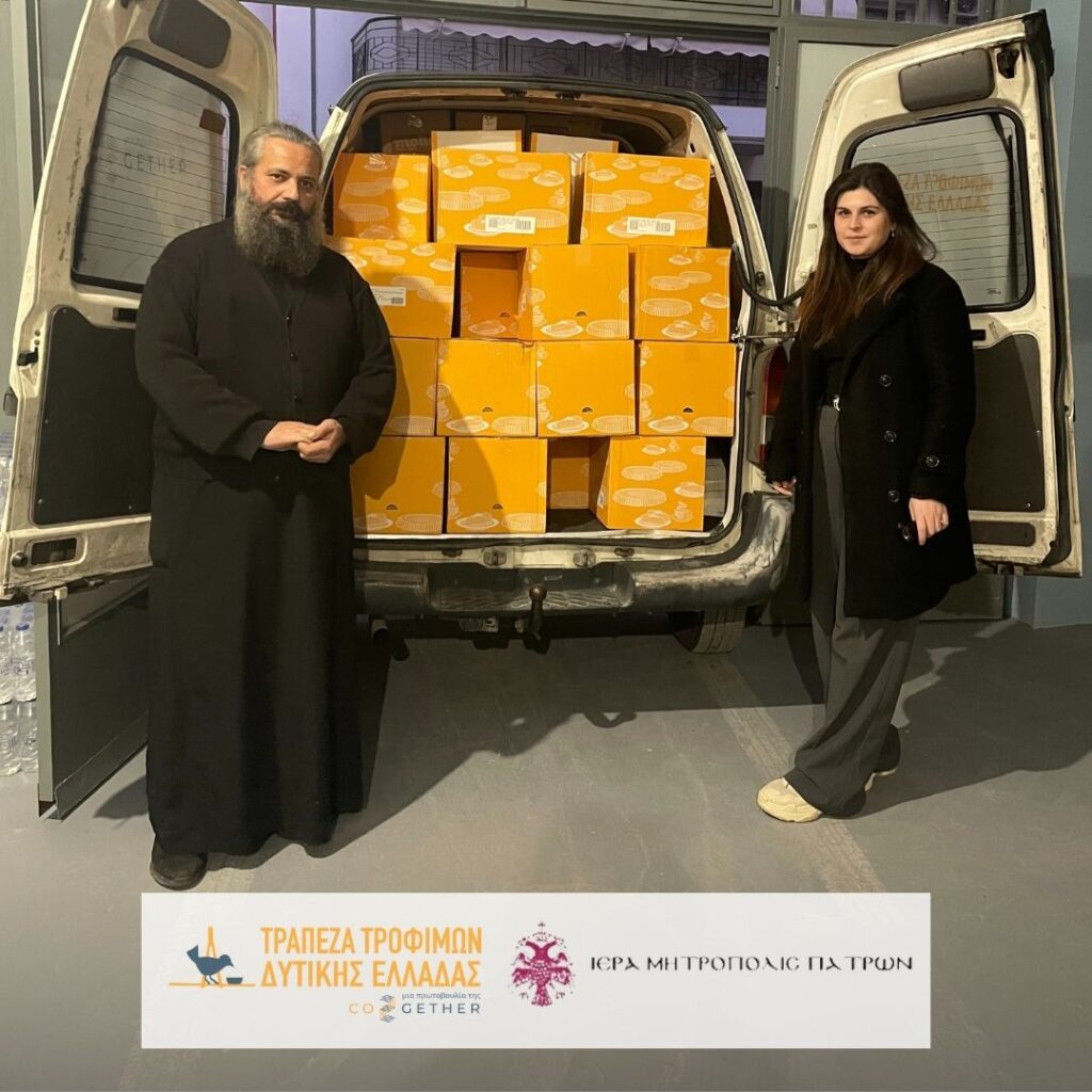 Η Τράπεζα Τροφίμων Δυτικής Ελλάδας παρέλαβε 40 κιβώτια τούρτας, 70 κιβώτια κρουασάν, 100 κιβώτια τρίμμα φρυγανιάς και 50 κιβώτια υγρού πιάτων από την Τράπεζα Τροφίμων Αθήνας.